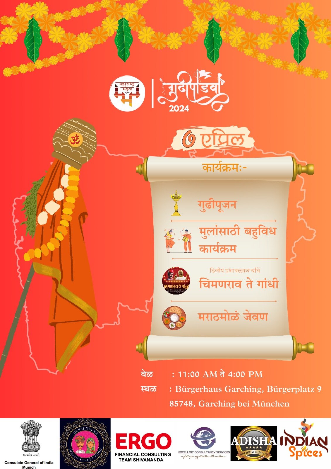 महाराष्ट्र मंडळ म्युनिक आपल्यासाठी गुढीपाडव्यानिमित्त खास कार्यक्रम आयोजित करत आहोत .